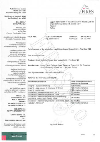 Fire Rated (Uluslararasi Yangina Dayaniklilik Raporu)
